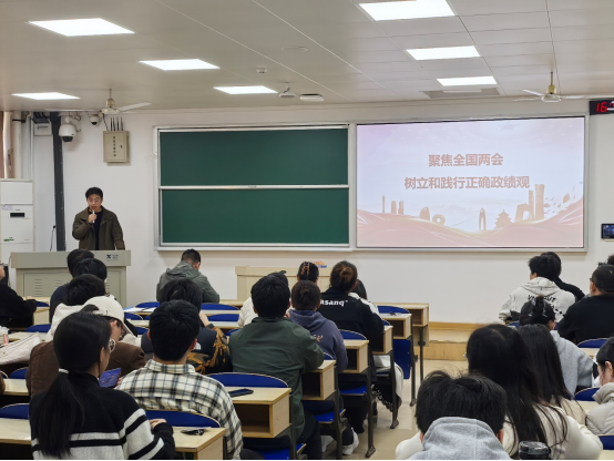 为深入学习贯彻2026年全国两会精神,引导青年学生党员树立和践行正确政绩观,将思想和行动统一到党中央决策部署上来,3月13日,学院本科生第四党支部、纳米能源党支部、材料加工研究生第二党支部与博士生第三党支部联合开展“聚焦全国两会,树立和践行正确政绩观”专题学习。学院党委书记王新平受邀讲授专题党课,本科生第四党支部书记陈少华主持学习,各支部党员同志共同参与学习。