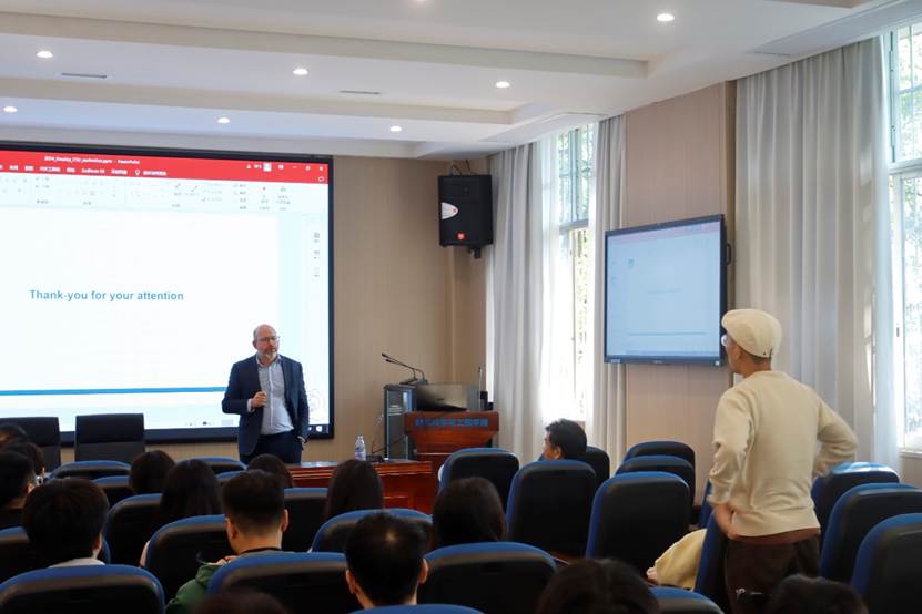 报告结束后,Christopher Gourlay 教授非常热情地回答了在场同学提出的问题,并与各位师生展开了热烈的交流,学术氛围十分浓厚。最后由王斌教授为Christopher Gourlay 教授颁发证书。