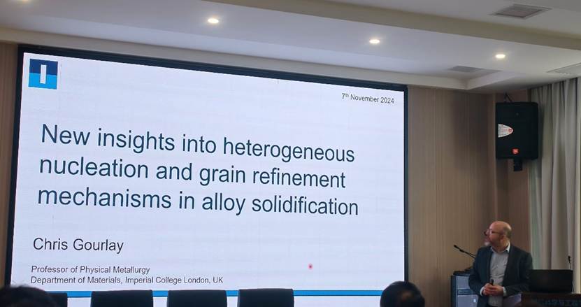 2024年11月7日上午9:00,中南大学材料学院青年科协联合中南大学材料学院研究生会举办的中南大学名师名家学术论坛暨材料学院“德材”讲坛第565场学术讲座于中南大学校本部化学楼210室举行,本次讲座主讲人为英国伦敦帝国理工学院Christopher Gourlay 教授,由王斌教授主持本次讲座,本次讲座吸引了众多师生参加,学术氛围十分浓厚。