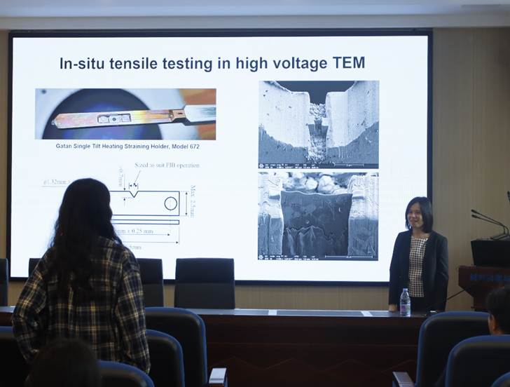 Xin Fu TAN博士就“Temperature-dependent properties of Sn-Bi alloys”方面进行了介绍。Xin Fu TAN博士讨论了Sn-Bi焊料合金随温度的变化,虽然Sn在Bi中的溶解度相对较低,但Bi在Sn中的溶解度可从室温下的约3 wt%到139°C的极冷温度下的21 wt%不等,这导致Bi随着温度的变化溶入Sn中或从Sn中析出,从而使Sn-Bi焊料的微观结构、晶格以及电气和机械性能发生显著变化;介绍了Sn-Bi合金相比于高温焊接-更高的能源消耗和能源成本、容易损坏热敏电子元件以及大面积木板翘曲的问题,低温焊接在经济、技术和环保三个方面更具优势;并通过各种温控原位测试方法对其进行表征,具体包括扫描电子显微镜(SEM)、同步辐射粉末X射线衍射(PXRD)、四点电阻测量和拉伸负载下的原位透射电子显微镜,发现了Sn-Bi合金晶格参数、电阻率和机械性能随温度的非线性变化。