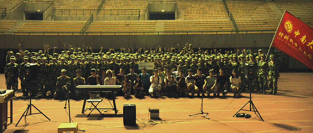 9月18日晚7:00,中南大学全体大一新生于新校体育馆内进行军训合唱比赛。中南大学学工部部长余文武亲临现场观看比赛。材料学院对此次活动十分重视,材料学院党委副书记胡小清、副院长李周以及古一、汪冰峰、高阳、彭需发等班导师纷纷到场为新生们加油喝彩!