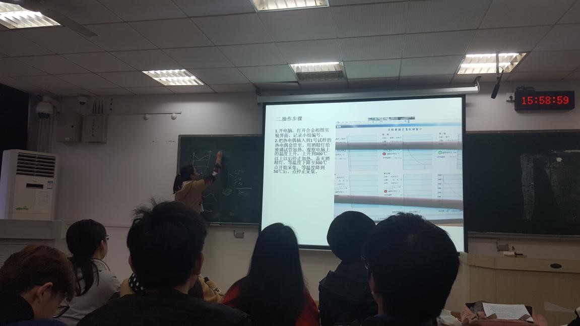 因物化实验课课时有限,每位同学仅能亲自实践5个实验,但课程要求掌握的实验有20项,考前一周团支书凌凯组织并开展了本次讲解大会。每位同学讲解自己实践的实验原理与操作经验,强调了实验中的注意事项,为其他同学解疑答惑。同时,秉承着材料学院"相互帮助,共同进步"的优良学风,团支书凌凯在讲解大会举办前向材料学院15级的同学们发出邀请,欢迎他们前来旁听学习。