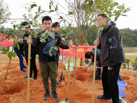 3月11日上午,同学们参与了植树活动。在到达源之溪农庄后,同学们开始热火朝天地植树,并将准备好的写有理想和目标的卡片和用彩带绑在树上。植树过后,有同学感慨:“让自己的希望和目标随着自己栽种的小树一起茁壮成长,这种感觉非常奇妙。”另一位同学打了比方:“学习就像一棵树苗,栽种下去,将来收获的是满树的成就。”