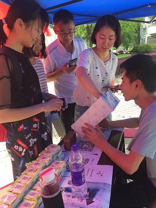 自三月底开始线上宣传以来,本次大赛就或得了大量关注,相关微信推送阅读量近两千,中南大学官方微博,中大之声等媒体也给予了相关报道,吸引了不少的参与者。线下的咨询台宣传也于4月1日在南校区和校本部同时开展,内容除发放相关海报传单,为同学们答疑解惑外还有抽奖活动,扫码转发微信推送分享至朋友圈即可参与抽奖,获得精美礼品。炎热的天气并未阻挡同学们的参与热情,前来咨询的同学们来自不同院系不同专业不同年级,人数众多,场面一度十分火爆。