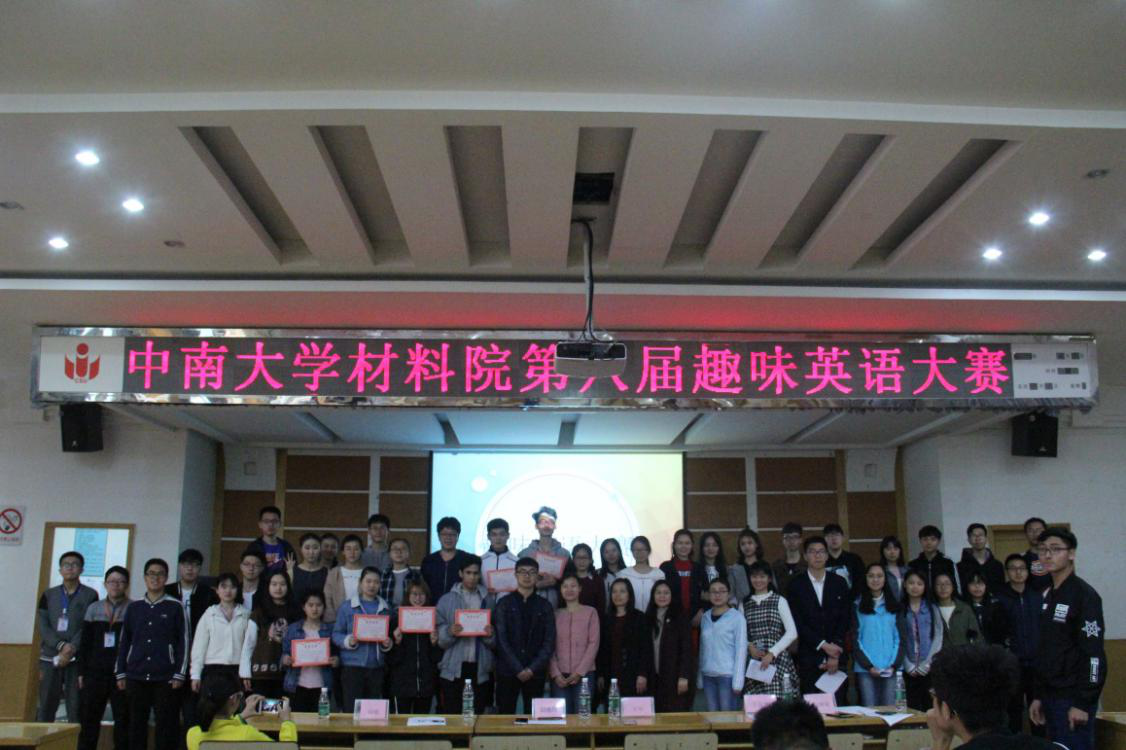 4月14日上午,由材料科学与工程学院团委学生会学习部主办的材料院第八届趣味英语大赛在校本部立言厅顺利举行。莅临现场的评委及嘉宾有中南大学外国语学院吴华老师、刘晴老师、邱香玲老师,材料院研究生会主席王奋翔,第45届团委学生会主席张博涵以及材料院部分同学。本次比赛由学习部何诗雨、于一涵主持。