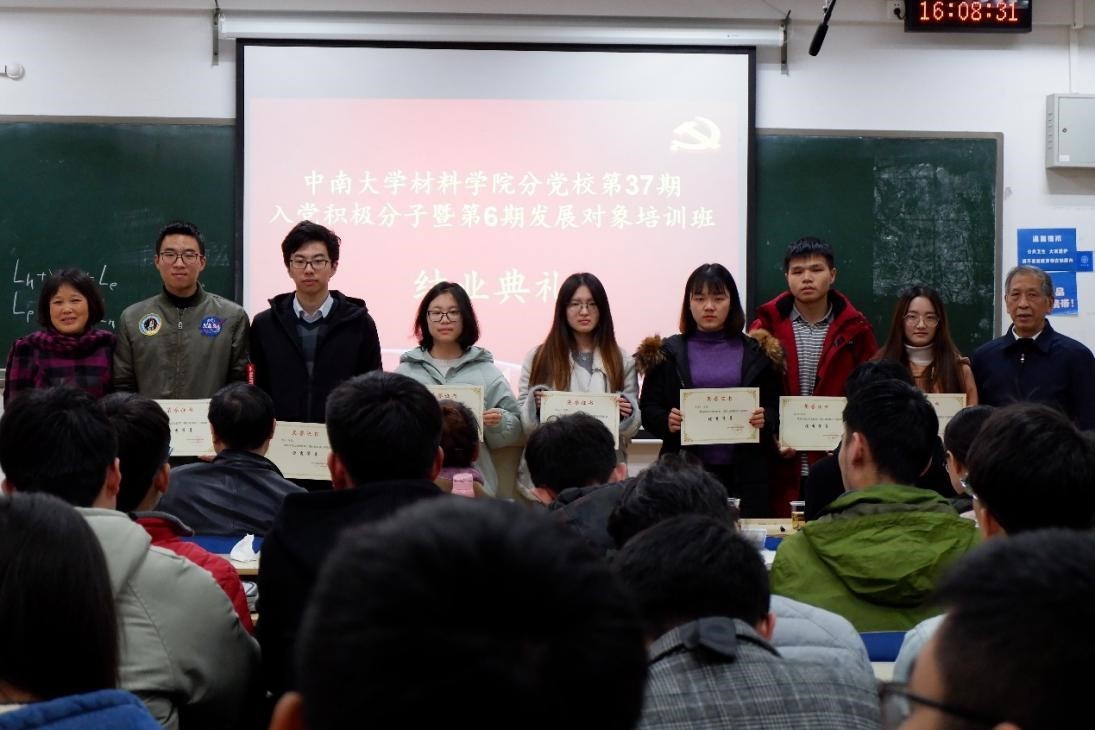 12月5日下午,中南大学材料学院分党校第37期入党积极分子暨第六期发展对象培训班结业典礼于校本部科教北楼201教室顺利举行。材料学院党委书记王德志,党委副书记胡小清,关工委老师胡其平,党委组织员赵艳,分党校班导师张桐,本科生第三党支部书记彭需发老师以及全体入党积极分子、发展对象参与本次结业典礼,典礼由张桐老师主持。