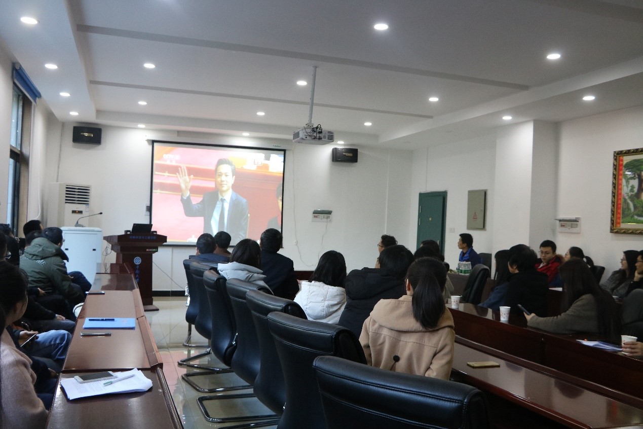 12月18日上午,材料学院于特冶楼229组织师生观看庆祝改革开放四十周年大会。材料学院党委书记王德志、院长梁叔全、副院长徐国富、14级辅导员刘骏、学工办教师以及党支部学生代表参加了此次活动。