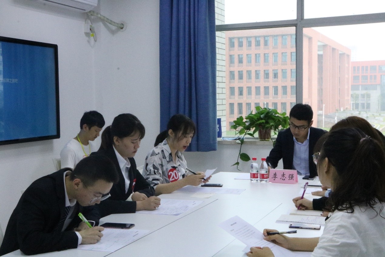 经过初赛筛选简历,复赛共有32位选手参加。根据求职意向,选手们被分为四组,以小组为单位进行多对多面试。自我介绍环节中,每位选手有九十秒的时间讲述自己的学生工作、实习经历和荣誉奖项等求职相关内容,评委们根据选手自我介绍提问。比赛中,评委毫不吝啬地向选手们传授面试技巧,对他们的发展提出建议,让选手和观众都受益不浅。第一轮最后,王亚坤女士致总结词,肯定了选手们的实力,并希望他们下午有更加优异的表现。