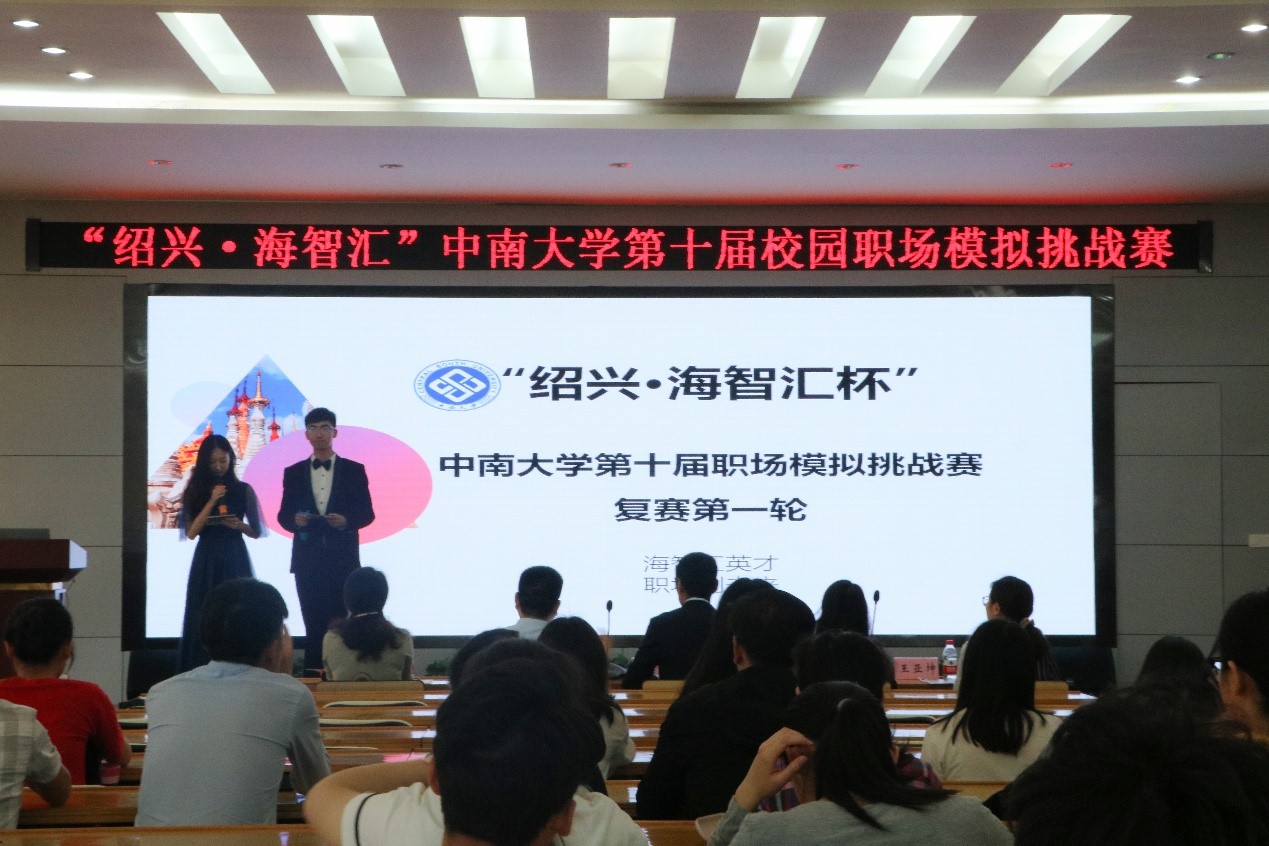 为了提高在校大学生的应聘和就业技能,增强学生心理素质,提高学生社会竞争力,5月11日上午,由中南大学就业指导中心主办,职业生涯发展协会承办,材料科学与工程学院协办的“绍兴·海智汇”中南大学第十届校园职场模拟挑战赛复赛第一轮在校本部立言厅成功举行。中南大学就业指导中心许徐赞主任,蓝月亮校园招聘人事主任王亚坤女士,湖南省福晟集团人力资源部经理周雄斌先生,佳兆业集团行政及人力资源部部长高级经理李志强先生,御家汇股份有限公司人力资源学院招聘主任彭小蒂女士作为评委出席本次比赛。大赛由材料院朱宇翔,文新院王姝茜主持。