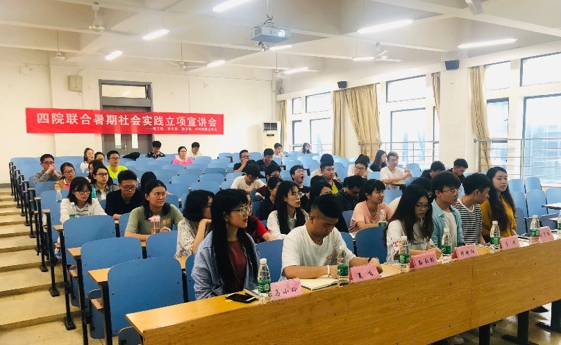 5月18日14:30,材料院、资生院、粉冶院、建艺院四院联合暑期实践立项宣讲会于新校区B座218教室顺利举行。中南大学社会实践中心主任邓艳红,暑期社会实践优秀代表建艺院康硕,罗晓岚,刘宇赫,资生院夏飞,粉冶院马小玲出席了活动。本次宣讲会由材料国际1801刘若辰主持。