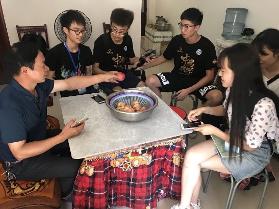 图为实践团对千手大屋管委会成员欧时良进行采访