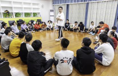 几个简单却有意义的游戏后,李老师让同学们搬来桌椅,分组讨论,伴着轻扬的音乐,同学们写下初到大学的酸甜苦辣,对于未来的期许,写完之后老师让同学们围坐一起,畅言这一晚的所感所思!