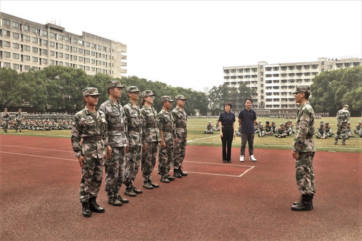 材料学院党委副书记胡小清、李俊老师也来看望新生,同时检验近段时间的训练成果,并提出相关意见。军训仍在如火如荼地进行中,希望新生们接下来能以更加积极的态度完成这次军训。