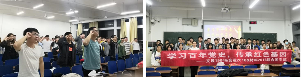 百年征途波澜壮阔,百年初心日久弥新,我们党在历史潮流中始终屹立不倒,团结带领全国各族人民不懈奋斗,战胜艰难险阻,不断取得革命、建设、改革的伟大胜利。为了庆祝共产党一百周年华诞,引导团员厚植爱党、爱国、爱社会主义的情感,让红色基因、革命薪火代代相传,交通设备与控制工程1904团支部、交通运输类2010团支部以及冶金材料类2016团支部联合开展团日活动,进行党史教育。