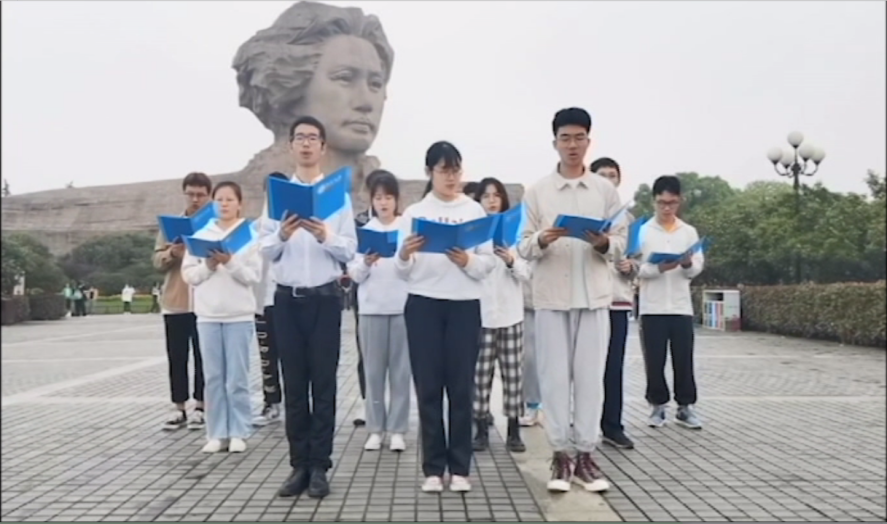 4月17日早上,在交设1904团支部书记唐萌的组织下,部分同学前往游览橘子洲,瞻仰伟人雕像,学习先辈精神,并在伟人像前进行了诗歌朗诵,表达对革命先烈的崇敬之情、缅怀之情。正如词中写道“百年/且再看苍茫大地/再忆峥嵘岁月/再一次/激起惊涛/开赴远方”,团员们深刻体会到了湖南革命先烈们视死如归、勇往直前的革命精神,意识到时代重任在肩,应不忘初心牢记使命,“后浪继前浪,再谱华章”!