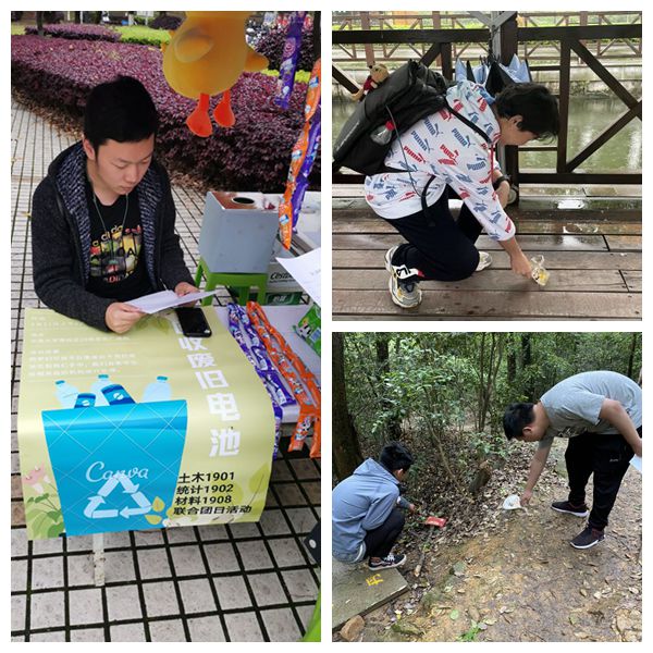 在联合联合团支部会议开展之前,三位团支书分别带领各自团支部的同学开展活动,如“升华广场回收废旧电池”、“洋湖踏青清理垃圾”等。通过实地实践志愿活动,同学们用特殊的方式保护周围的环境,让各位同学对于本月的团日活动有了初步的了解,也让绿色生活的概念深入人心。