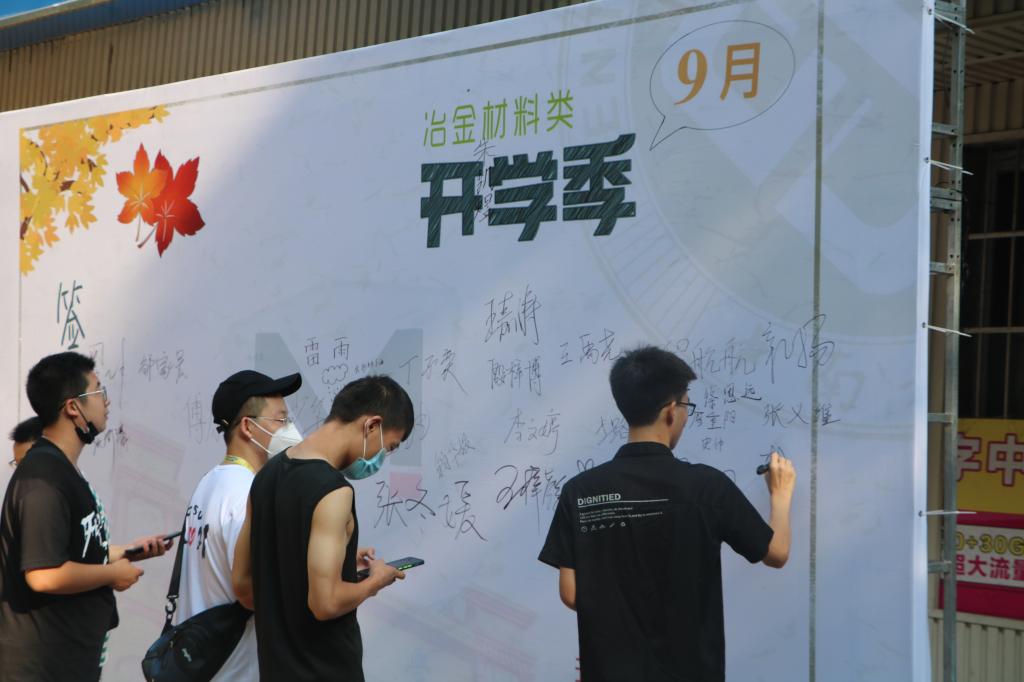 材料学院在在新校区下车点和升华公寓19、33栋设置迎新点,井然有序地进行迎新服务,并放置“冶金材料类开学季”特色签名墙。新生到校后,在签名墙上写下姓名和祝愿,留下在中南大学的第一个印记。