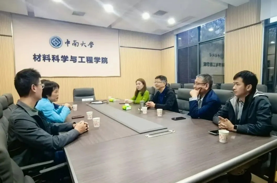 2025 年 11 月 1 日至 3 日,中南大学 2025 科技创新与产业创新深度融合大会在长沙隆重召开。借大会举办契机,中南大学山东校友会会长吕长广、执行会长杨晓刚、副会长范波、副会长孔琳琳、副会长兼秘书长杨唐刚一行专程到访材料科学与工程学院,开展深度交流。学院副院长刘华山,中南大学山东招生组副组长胡小清,山东招生组秘书张彦隆,学院辅导员陈少华热情接待并参与座谈。