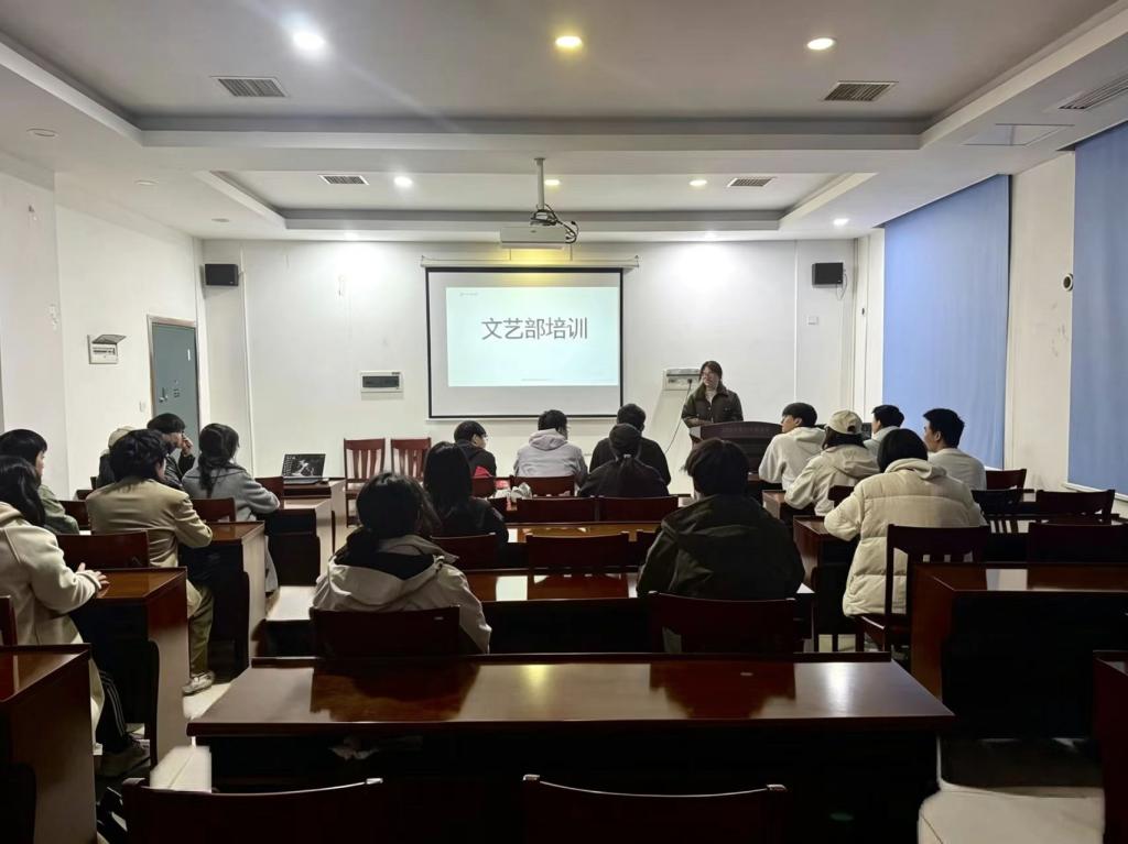 在培训现场,负责人以“文艺部培训”为主题,详细梳理了部门日常工作规范,针对活动策划案撰写、节目审核标准、场地布置流程、宣传物料设计等实操内容进行细致指导,同时结合自身工作经验,分享了如何平衡学业与学生工作、如何高效沟通协调等实用技巧,为成员们答疑解惑,帮助大家理清工作思路,提升履职能力。