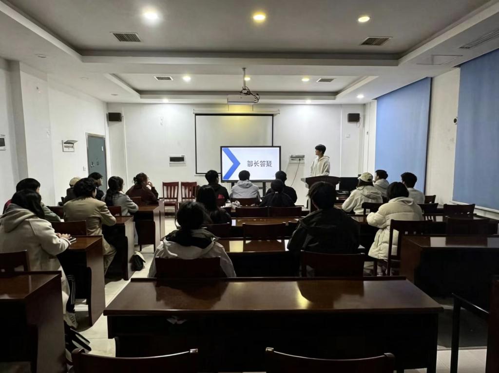 随后的“部长答疑”环节中,成员们结合自身在工作中遇到的困惑与疑问积极提问,内容涵盖活动创意落地、跨部门协作、节目编排优化等多个方面。负责人逐一耐心解答,针对共性问题进行集中梳理,分享解决方案与优化思路,同时鼓励成员们主动思考、大胆创新,在实践中积累经验、快速成长,现场交流氛围热烈融洽。