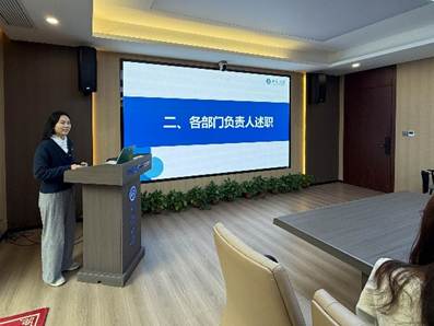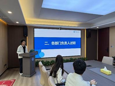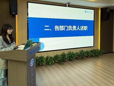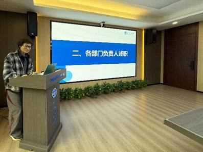 学术部部长朱慧琳以提升研究生学术素养为核心,全面总结了本学期学术工作的实践成果,重点回顾了“德材讲坛”名师学术交流活动、“材子开讲”系列分享(涵盖国奖经验、就业指导),以及联合粉冶院、生命科学院共同举办的“金鹭杯”显微摄影大赛等特色活动的开展情况与宝贵经验。她表示,后续将持续深耕学术服务领域,创新活动形式、丰富活动内容,进一步搭建师生交流、同辈共进的优质平台,以学术交流激发科研活力,助力营造学院浓厚的学术研讨氛围。